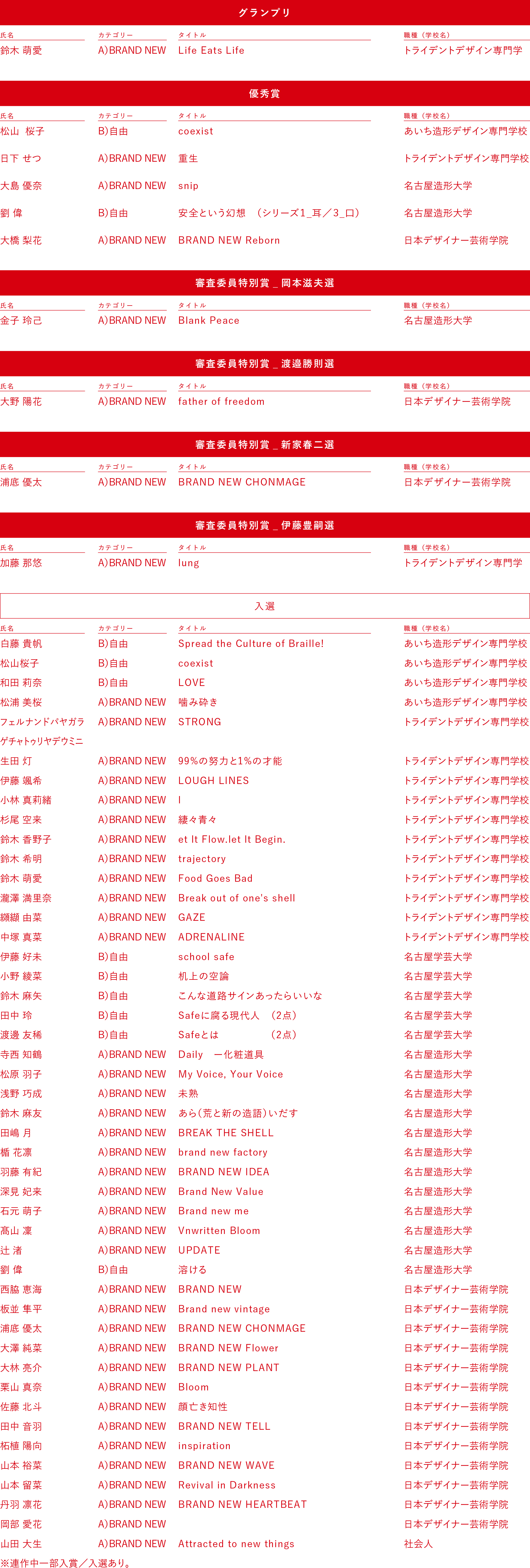 受賞者・入選者の皆さま、おめでとうございました。